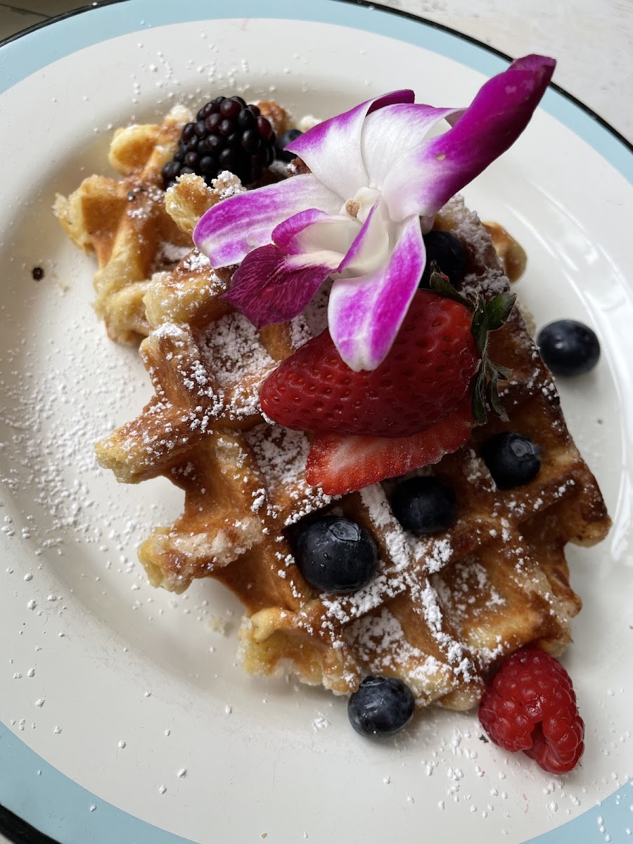 One standout menu item is the Liege waffles, which have a unique doughnut-like consistency and come topped with fresh fruit. The pulled lamb sandwich and chipotle chicken sandwich are also popular choices, showcasing the cafe's diverse menu.